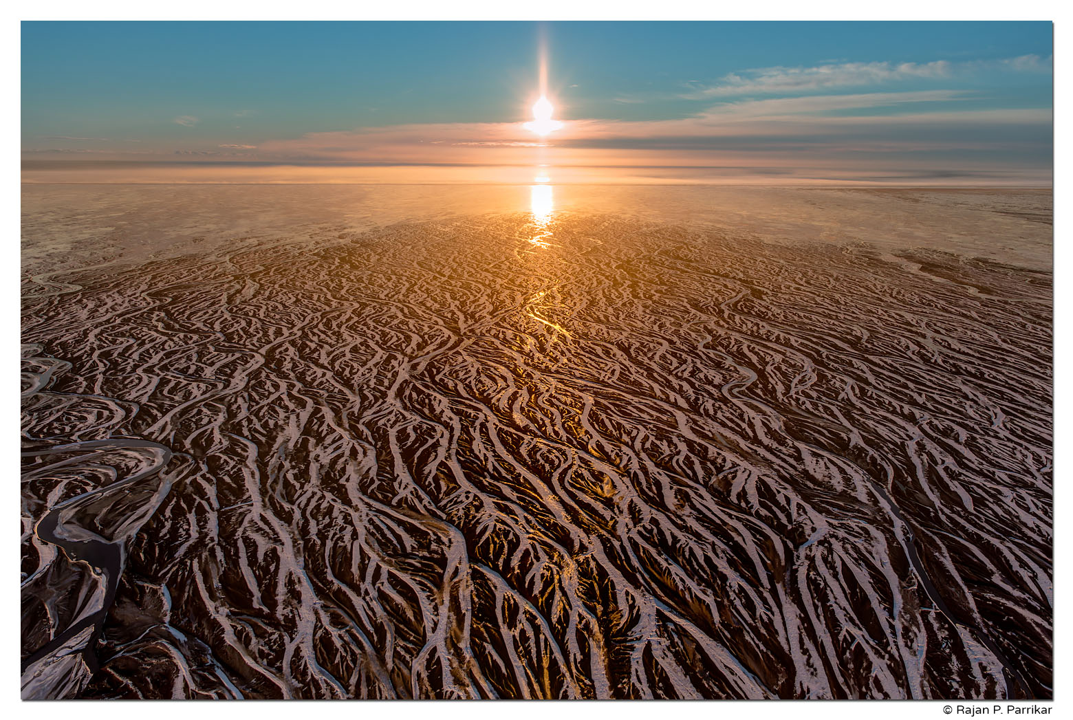 The images were taken in the month of December when the sun stays close to the southern horizon over the Atlantic Ocean. It was an extraordinary sight, the interplay of the glancing light with the ice, sand, and glacial streams below.