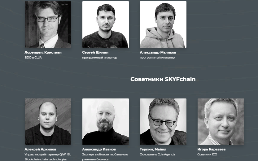 Команда разработчиков SKYFchain состоит из более чем 30 российских инженеров и разработчиков, специализирующихся на машиностроении, информационных технологиях и развитии сообществ. Каждый из них имеет многолетний опыт работы в транспортных компаниях, ведущих научно-исследовательских лабораториях.