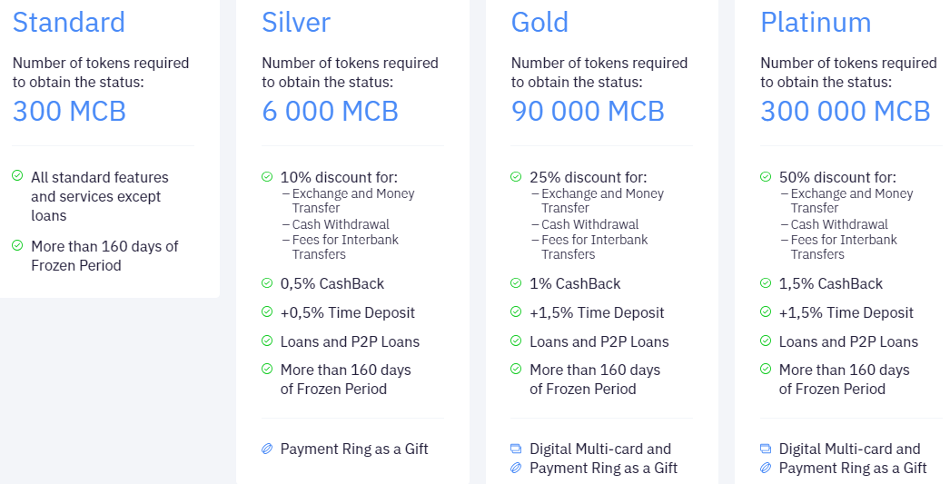 Depending on how many tokens users hold, they get the following status: