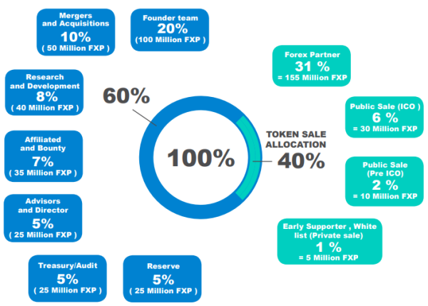 Total amount of issued tokens: 500,000,000 FXP