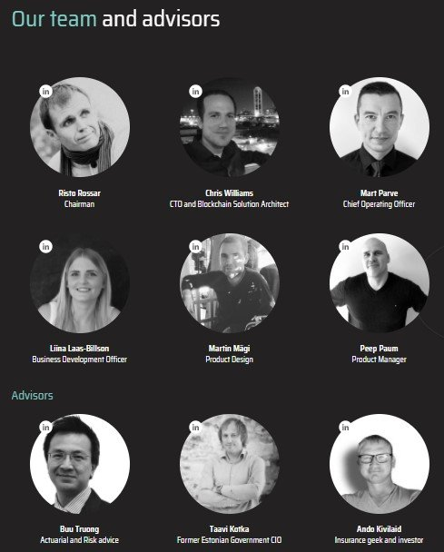 В состав команды входят ветераны страховой отрасли и эксперты по блокчанам. Это отличная смесь знаний в страховой отрасли, опыт в технологии blockchain и криптопространстве. Основатель имеет более чем 18-летний опыт работы в страховом программном обеспечении и видит настоятельную необходимость в решениях, которые будут демократизировать поле с помощью технологий.