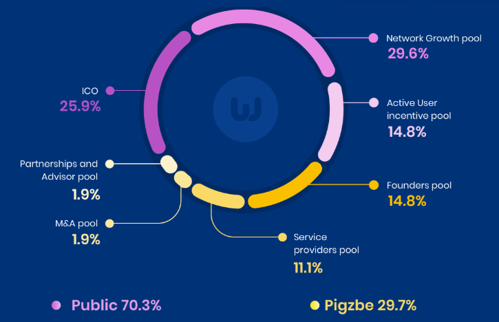 सबसे पहले नोट करने के लिए पिग्ज़बे का मूल टोकन स्वयं है, वोलो, जिसमें डब्लूएलओ का टिकर है, और क्रिप्टोकुरेंसी है जो पिगज़े इंजन को शक्ति देती है, जो भौतिक धन की जगह लेती है जिसे परंपरागत रूप से एक पिग्गी बैंक में जमा किया जाएगा।