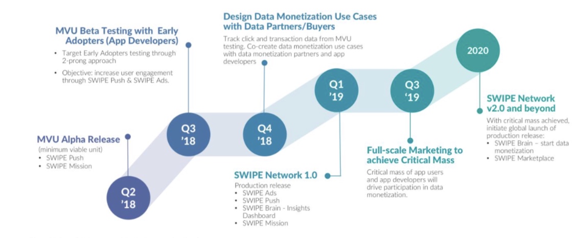 La versión de trabajo del programa con módulos para recopilación de datos, análisis, información "en bruto", encuestas de incrustación en aplicaciones estándar estará disponible a principios de 2019, luego se planea ingresar al mercado masivo (el tercer trimestre del próximo año). En 2020, el proyecto Swipe se lanzará en la segunda versión modificada. El ecosistema Swipe se refiere a productos enfocados en el segmento B2B y adaptados a las necesidades del mercado actual. La arquitectura adaptable y las herramientas de programación integradas atraen el flujo de posibles inversores al proyecto.