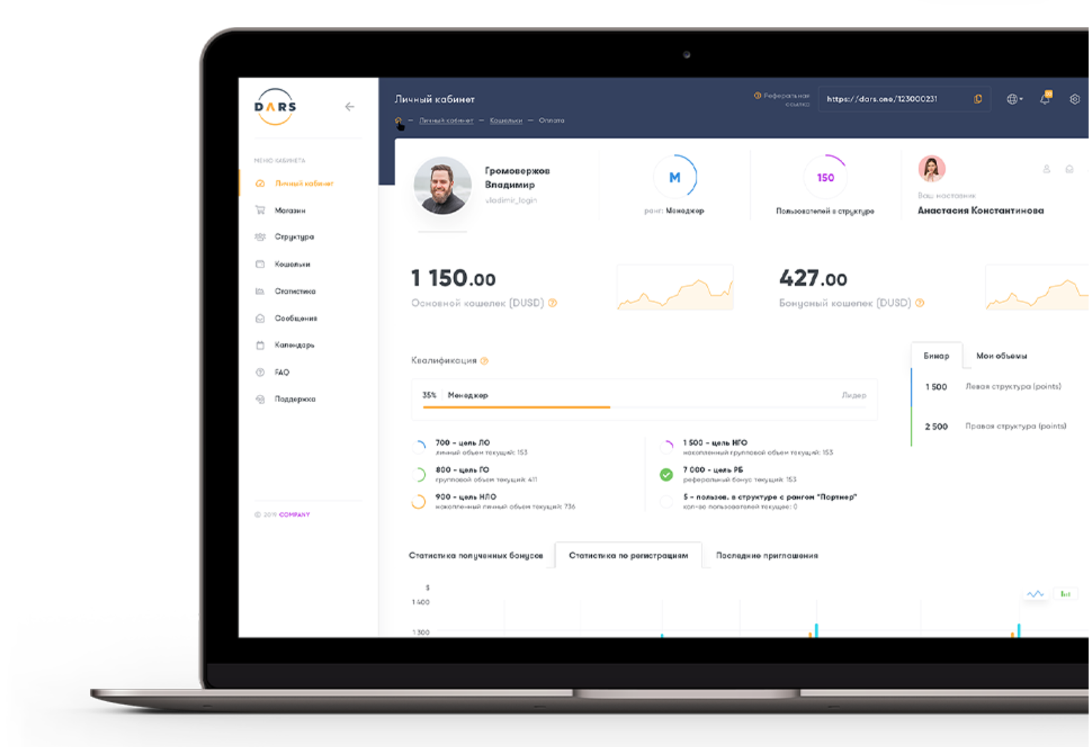 Стоит отметить, что с помощью децентрализованной платформы DARS можно создавать маркетинг-план любой сложности не только для MLM, но и для традиционного бизнеса. На платформе также будет представлен образовательный центр и информационно аналитический портал по MLM.