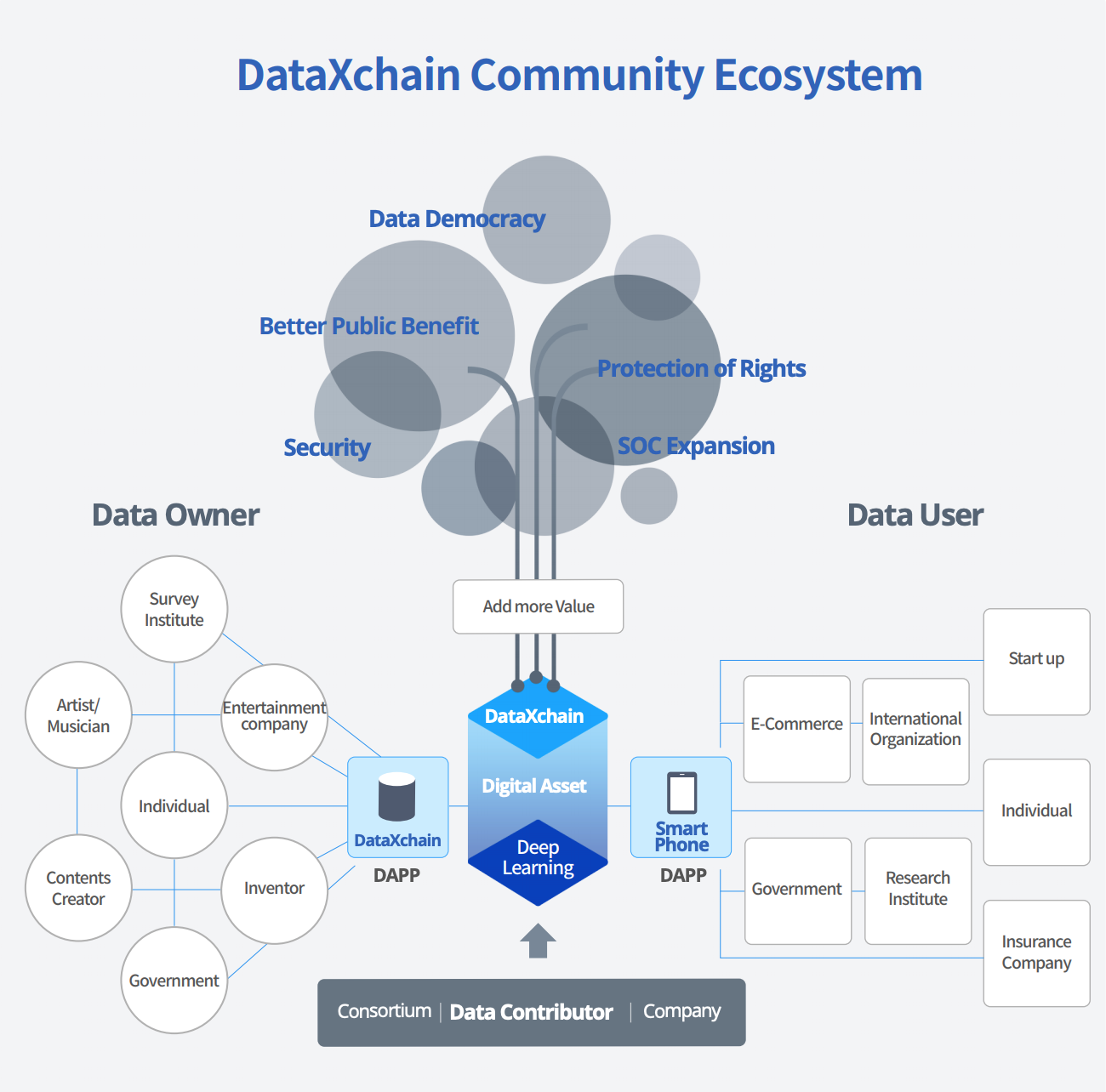 The main parties involved in the ecosystem are the owners of personal data, users of this data, as well as the participants (wholesale buyers of data) of the platform. Each of these contractors receives a benefit from participating in DataXchain: