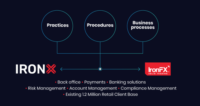 We want our exchange to offer services commonly used by traders, and combine them with the benefits of trading on the cryptocurrency market. We also want to introduce crypto traders with the benefits offered by traditional trade. IronX Exchange intends to enable clients to use IronX Exchange and cryptocurrency crypto accounts to migrate or move (partially or completely) positions/exposures into the IronFX Group online trading platform efficiently, quickly and without cost, through the general use of the best back office and banking backbone and payment methods available by IronFX Group. In addition, the accumulation of existing experience related to Risk Management, Account Management, and Compliance Management will be used as an unlimited bridge that facilitates the process of transferring/positioning from cryptocurrency trading to traditional online trading.