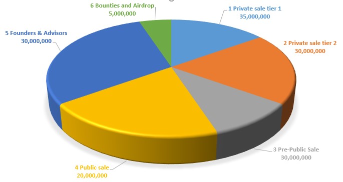 | 5 | Founders & Advisors | 30,000,000 | 30% |