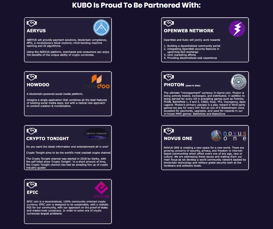 The use cases of a retail ecosystem, two native exchanges, ATM integration, debit cards, point of sale system, mobile payment system and escrow platform gives Kubo an edge over other projects that are simply working towards creating a payment mechanism for consumers and vendors only. It is important to note that all the use cases for Kubo to become not only a valid payment option but a project and brand that can bring stakeholders together and create systems that make the process approachable for all and competitive against the current competition in emerging market.