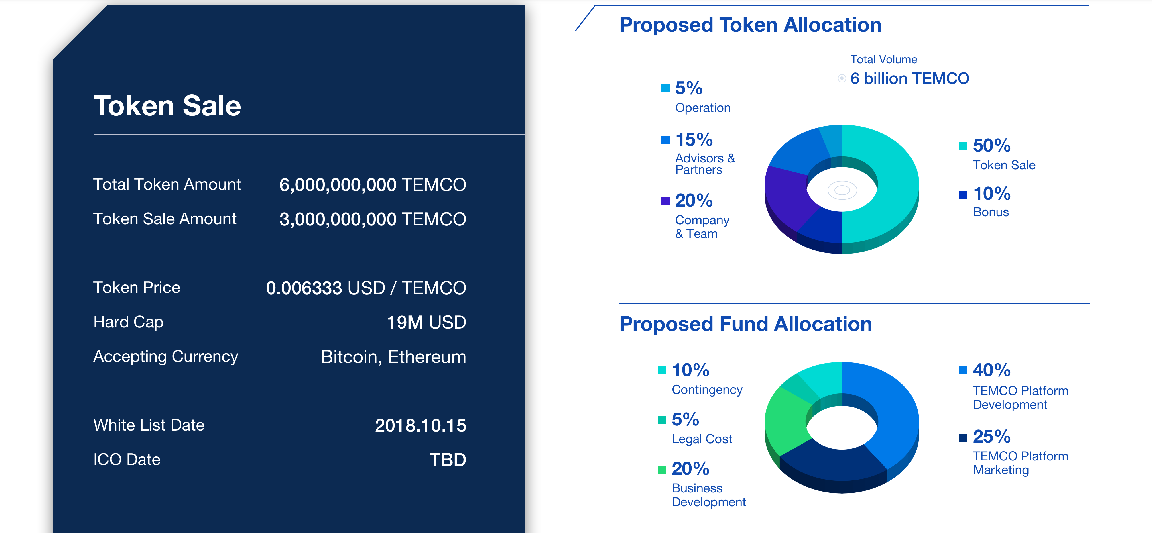 ICO Token Price: 1 TEMCO = 0.0063 USD