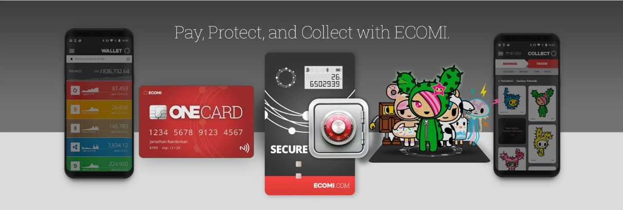 ECOMI also create ECOMI One, an in-wallet exchange card which can be used to make contactless payment in places where bank issued credit cards are accepted. Users can exchange to fiat directly on the app or automatically at the point of sale. The card holds both fiat and cryptocurrency, NFC-enabled credit and debit, also loyalty cards.