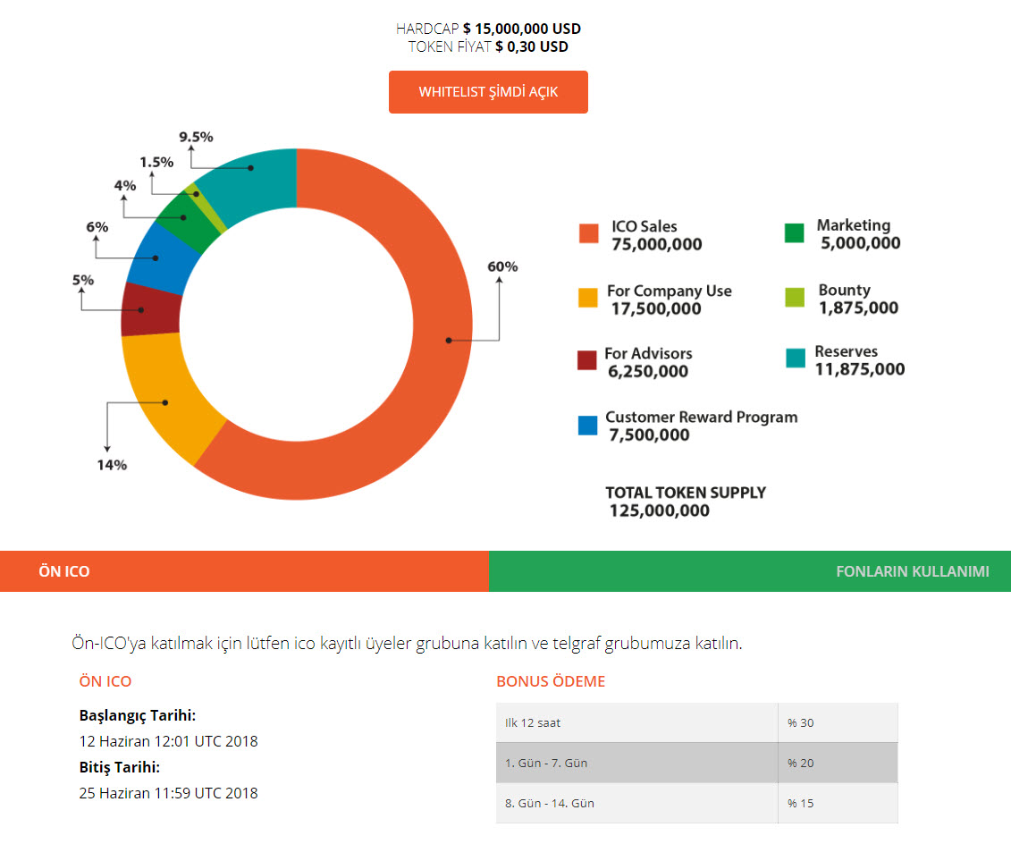 ICO 28 Haziran'da başlayacak 26 Temmuz'da bitecek. Yaklaşık 30 milyon EHH satışı yapılacak.