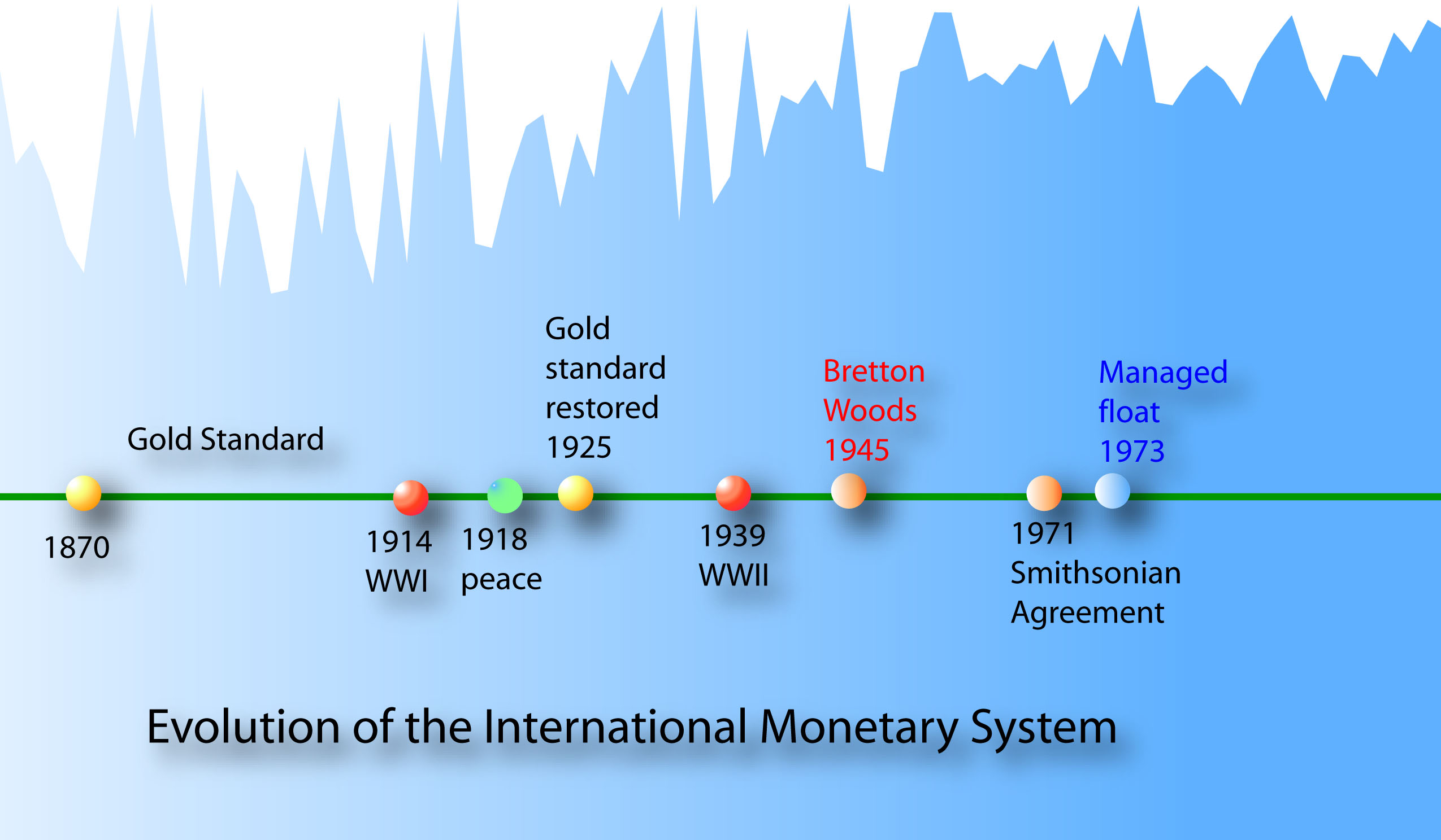 2차 세계대전 이후 어려워진 많은 국가들은 브레튼우즈 협약으로(Bretton Woods system) 금태환제를 유지하는 미국의 달러를 기초자산으로 자국의 통화가치를 유지하도록 하였습니다.