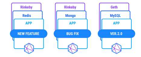 Mit Docker-basierten Sandboxes kombiniert mit nativen Linux-Containern stellt Buddy sofort einsetzbare Entwicklungsumgebungen namens dAppOS vor. Dies ist eine schlüsselfertige Lösung für das Bootstrapping von blockchain-basierten Projekten wie dApps. In der Regel handelt es sich hierbei um eine Mischung aus Front-End- und Backend-Stacks mit Vertrauenslogik, die sich auf einer Blockchain befinden. Außerdem kann dAppOS wie Sandboxes leicht mit zusätzlichen Diensten wie MySQL, Redis, Mongo oder Elastic Datenbanken erweitert werden, so dass es sehr einfach ist, den Entwicklungsstapel zu erweitern.