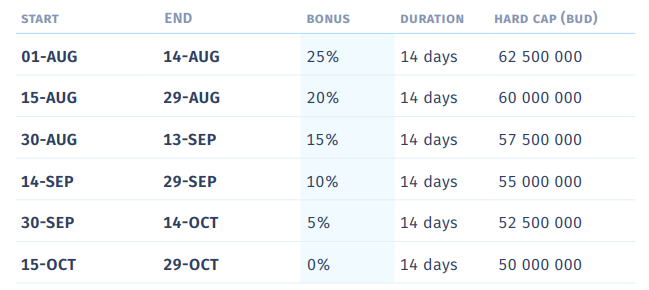 - Gesamtangebot: Maximal 670 Millionen BUD-Token werden generiert. Mindestens 500 Millionen.