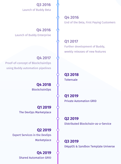 Mit dAppOS stellt Buddy das Template Universe vor, ein Marktplatz für Sandbox- und dAppOS-Vorlagen, die von Drittentwicklern bereitgestellt werden. Die Vorlagen reduzieren die Reibung erheblich, um neue Blockchain-Technologien zu testen und zu testen. Es gibt keine Probleme bei der Installation und Einrichtung - starten und spielen Sie nur Zeit. Eine Beispielvorlage: Ein Drittanbieter kann eine Sandbox bereitstellen, die einen Smart-Vertrag in einem geschlossenen Testnet ausführt, und eine Web-Benutzeroberfläche für die ABI / JSON-Schnittstelle des Vertrags, die eine einfache Interaktion mit dem Vertrag für Nicht-Programmierer ermöglicht. Solch ein dAppOS kann automatisch für jeden Code-Zweig ausgeführt und bei jedem Push aktualisiert werden - so wie Buddy's Sandboxes derzeit funktionieren. Tester und Kunden können damit einfach die Geschäftsziele eines Vertrags validieren, während Entwickler sie in den Buddy-Pipelines verwenden können, um automatisierte Tests zu erstellen, die dagegen ausgeführt werden.