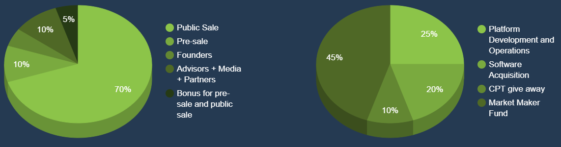 The two token ecosystem consisting of the outward facing, tradeable CCC token, and the internal only CPT token, is unique and addresses many issues pertaining to industry level use of blockchain products.