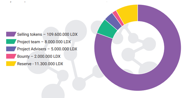 The Token LDX is compatible with ERC20 and is intended to fund the development of the LeadRex platform and marketing activities before the project is released to the self-sufficiency stage. It is planned to release 135.9 million LDX, which will be distributed as follows: The LDX Token is compatible with ERC20 and is intended to fund the development of the LeadRex platform and marketing activities before the project reaches self-sufficiency. It is planned to release 135.9 million LDX.