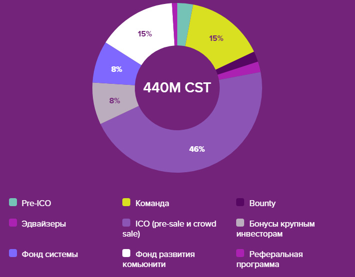Распределение токенов CST будет осуществляется по следующей схеме: