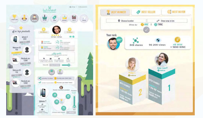 На платформе все операции осуществляются при помощи собственной валюты WNC. Эта валюта, основанная на протоколе Ethereum, благодаря своей блокчейн системе, позволяет производить безопасные обмены и целостность всех переводов без участия посредников. Вы сможете отслеживать все операции с помощью вашего виртуального кошелька. Кроме этого на платформе существует токен лояльности или TWNC- это кредиты. Получать TWNC вы будете систематически, зарабатывая с каждого из ваших вкладов в операции сети или на действиях ваших подписчиков. Winnest предоставляет возможность своим пользователям бесплатно увеличит видимость их информации, благодаря спонсору "Boost", финансируемому кумулированным TWNC. Одна из основных функций платформы Winnest позволяет влиятельным лицам продавать рекламное пространство WNC или TWNC на своих новостных лентах. Платформа Winnest предлагает все инновационные преимущества рынка будущего сегодня. При поддержке Social marketplace, Winnest предлагает глобальный рынок, позволяющий каждому получать вознаграждение за свой вклад и увеличивать свою видимость. Концепция платформы Winnest, основанная на том, что любой пользователь может стать филиалом платформы и зарабатывать на этом деньги в современной эпохе социальных сетей гарантирует успех в будущем. Winnest может стать источником постоянного дохода для своих пользователей, так как это инновационная платформа, объединяющая совместную экономику и социальные игры, гарантируя при этом вознаграждение для каждого пользователя. Чтобы увеличивать поток транзакций платформы, Winnest предлагает своим пользователям различные миссии и соревнования, как источник дохода.