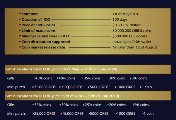ORBIS token is created in a limited supply of 8000.000.000.000 tokens which price will start at $0.50. ORBS token will be used to transfer funds safely not causing customers any money lose