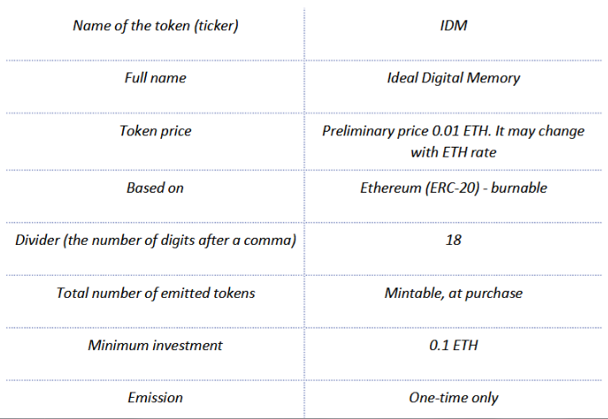 April 2018 – ICO for the global decentralized ultra-secure storage service IDM