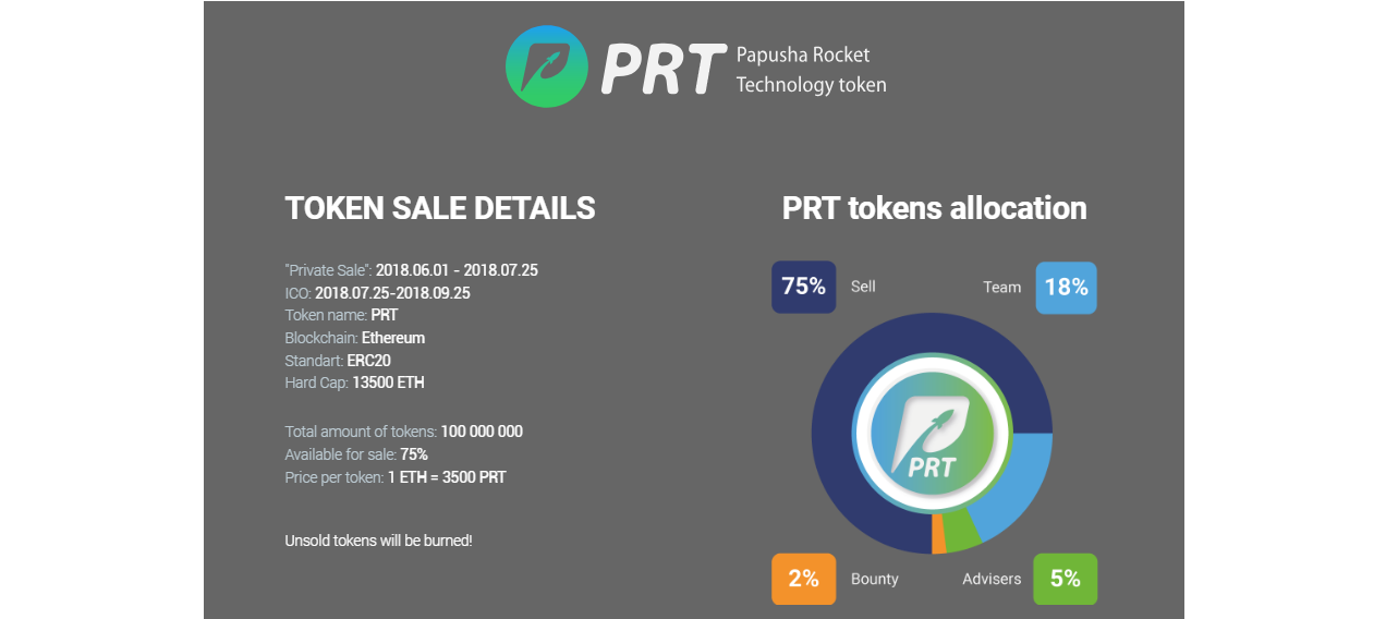This innovation was incorporated into the UN list under the name of the creator of "Papusha Rocket Technology" (PRT) and on its premise this ICO is propelled.