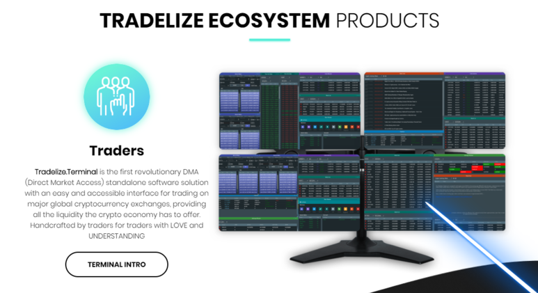그러나 자금을 관리 할 수있는 기회 만이 프로 트레이더를 Tradelize 생태계에 끌어들이는 유일한 요인은 아닙니다. Tradelize.terminal은 주요 글로벌 암호화폐 거래소를위한 쉽고 액세스 가능한 인터페이스가있는 최초의 혁신적인 DMA(Direct Market Access) 솔루션으로, 사용자가 단일 교환기 또는 동시에 모두의 유동성 깊이를 분석 할 수 있도록합니다. 스마트 주문 라우팅, 강력한 매칭 엔진, 차익 거래 파인더 및 기타 많은 성숙한 자본 시장 기능이 사용자의 거래 성과를 전례없는 수준으로 끌어 올릴 것입니다.
