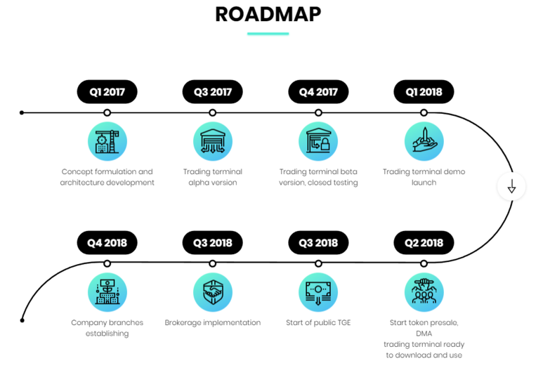 로드맵인데요, 작년 1월 컨셉을 잡고 개발하기 시작했습니다. 이후 트레이딩 터미널 알파버전 출시, 클로즈 테스트, 데모 런치 등등등을 해왔고, 현재 토큰 프리세일중입니다. 3분기에 TGE시작하는군요. TGE 아시죠? 토큰 생성 이벤트.