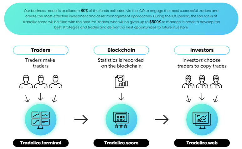 우리의 비즈니스 모델은 ICO를 통해 수집 된 자금의 80%를 할당하여 가장 성공적인 거래자를 끌어 들이고 가장 효과적인 투자 및 자산 관리 접근법을 창출하는 것입니다. ICO 기간중에 최고의 전략과 거래를 개발하고 미래의 투자자에게 최고의 기회를 제공하기 위해 최고 500만 달러를 관리하는 최고의 프로 트레이더로 채워질 것입니다.