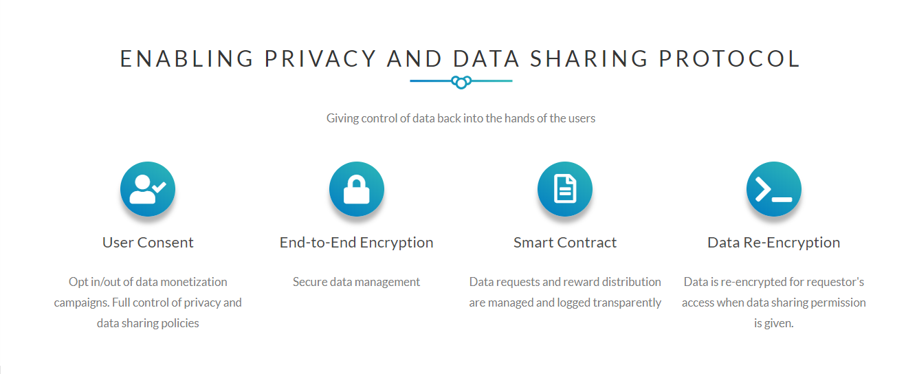 Thanks to it, control over your data is only in your hands. You can enable/disable the campaigns you want/don't want to participate in. It also provides end-to-end encryption - your data is protected. Smart contract regulates the distribution of rewards, everything is transparent and fair. Well, re-encryption of data is implemented - advertisers do not receive your data, but only the encrypted code.