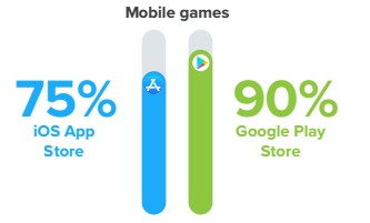 В рыночном отношении мобильные игры занимают более 40% самых прибыльных сфер игровой индустрии. При чём они доминируют не только в игровой индустрии, но и на рынке мобильного программного обеспечения! Ниже на фото мы можем увидеть статистику дохода в iOS App Store и Google Play Store.
