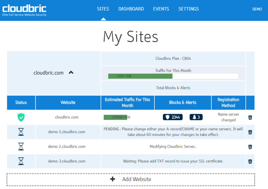 https://demo.cloudbric.com/console/siteList