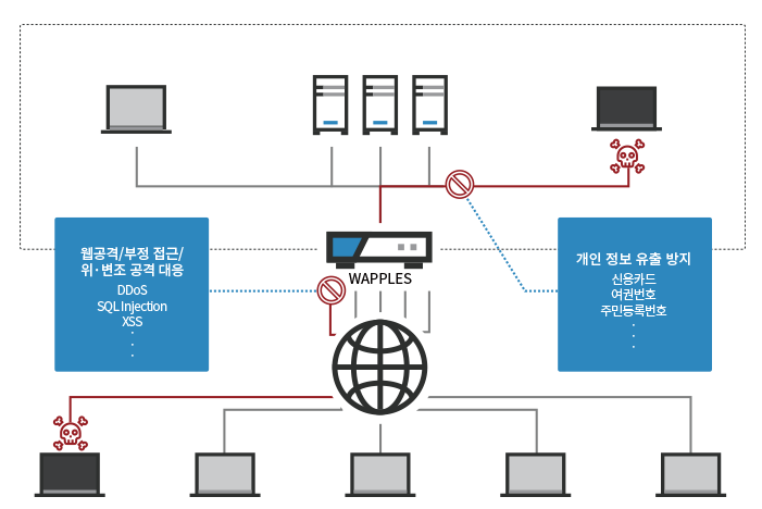 - 비용 : WAPPLES는 물리적 장비를 포함하여 구매해야 하기 때문에 중소규모의 사이트에서는 진입장벽이 높습니다.