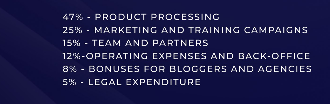 A fixed number of Tokens will be issued, the volume of sales will be limited by Hard Cap, unsold tokens will be burned. The distribution of Tokens will be done through a smart contract. The collected funds will be used for Ecosystem Development, the integration of the Token and the financing of advertising and marketing.