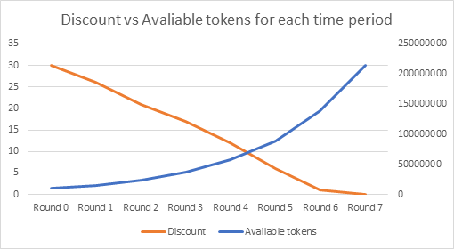 limit, on order tokens sold at previous round priceNumber of rounds is determined by demand (Whether previous round