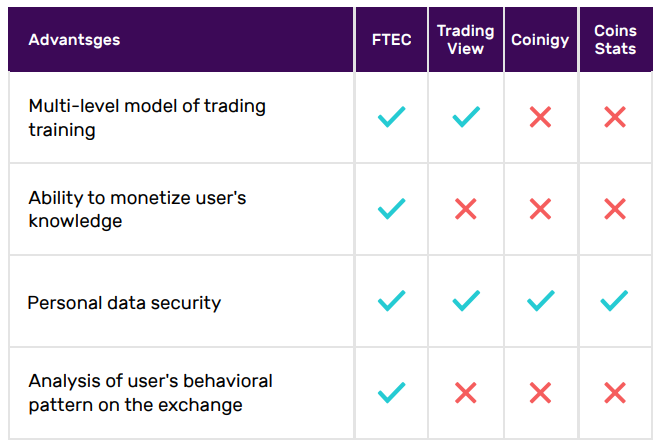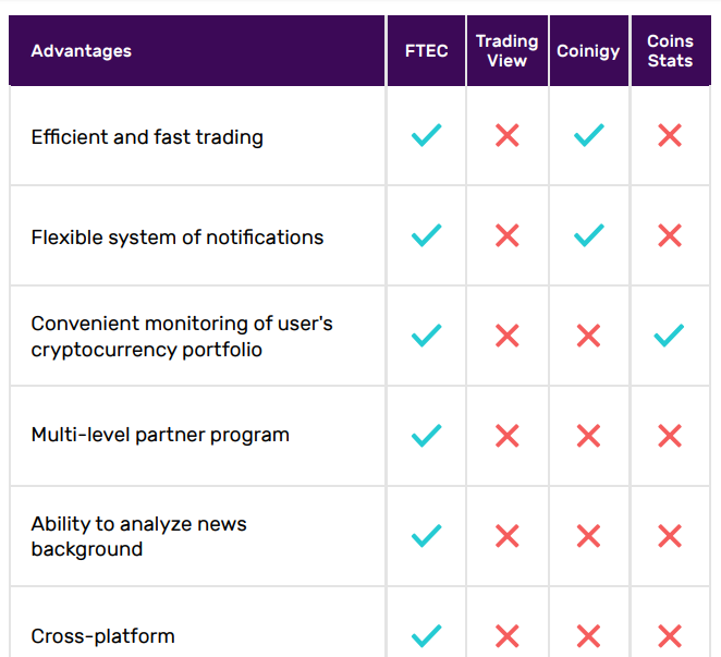 FTEC is an ecosystem of intelligent services and neural networks for conducting effective trading activities on cryptocurrency markets. FTEC global mission is to reduce the number of unprofessional traders. The idea behind this project is very clear and simple: to create a holistic ecosystem that will contain all the necessary tools for users with any level of experience and knowledge in the field of cryptocurrencies. FTEC already have currently running projects based on algorithms for automatic trading on crypto markets, they gave us a great and valuable experience and therefore we moved on to fulfill more ambitious goals. FTEC’s aim is to provide intelligent ecosystem services and provide an effective network of activities for traders in the digital currency market.