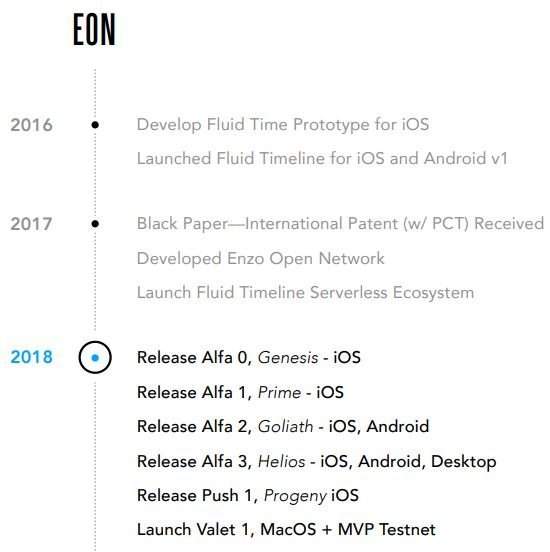 EON offers its own Enzo (NZO) token with a saved internal value. This token will be provided by time, so its value can not be inflated or depreciated. Developers want to correctly assess, measure and reward users for their human time resource. The value of token is related to network ecosystem effect. NZO token is equivalent to 365 days with daily units in Zs. Distribution of tokens depends on participation. As more and faster network grows, as more expensive token becomes.