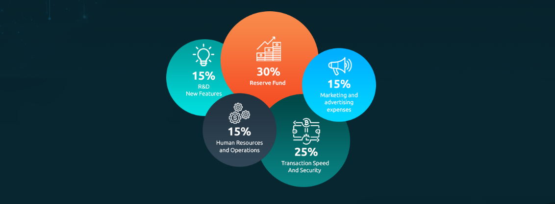 - 25%: will cover the cost to complete the transaction platform, increase network to increase transaction speed up and maintain security system