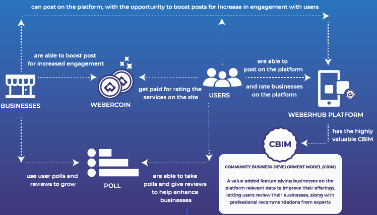 Webercoin is the token that fuels the WeberHub marketplace which connects businesses to users on an easy-to-use platform rewarding them for engagement on the platform, all within an Ads network system. Using Webercoin, the primary token on the platform, as well as other widely used tokens, businesses connect with their customers better, and customers get rewarded for using the platform. WeberHub is the platform that brings them together, increasing interaction between businesses and customers, with low-cost advertising and seamless processes.