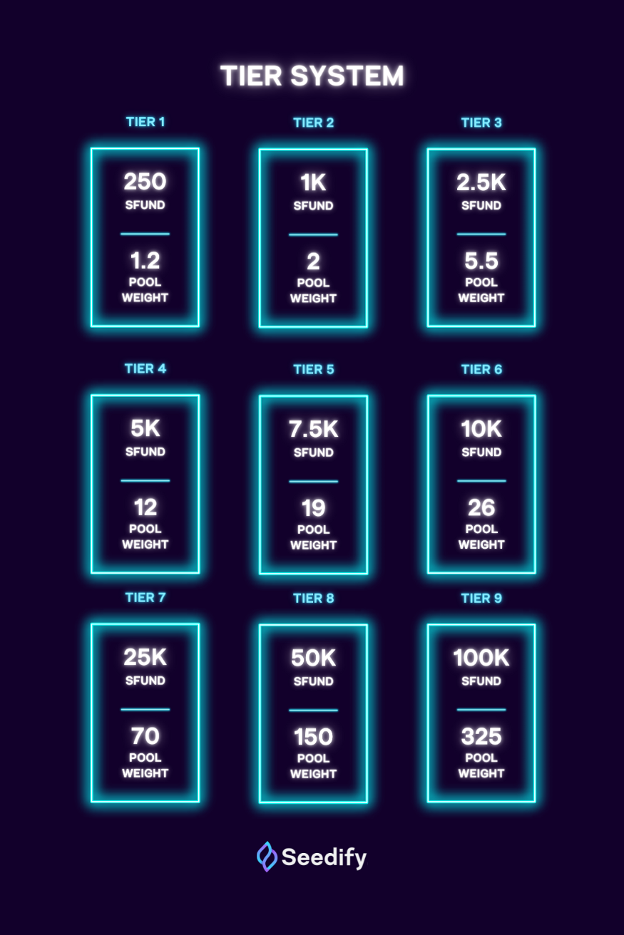 Seedify has a tier system where the more SFUND you have, the higher sizes of tokens you get from Initial Game Offerings. To learn more about our updated tier system