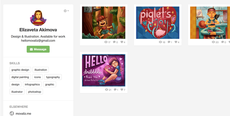 Finally I have Dribbble portfolio It is kind of the Instagram for designers. It is closed community, you can submit your works there only of you have special invite.