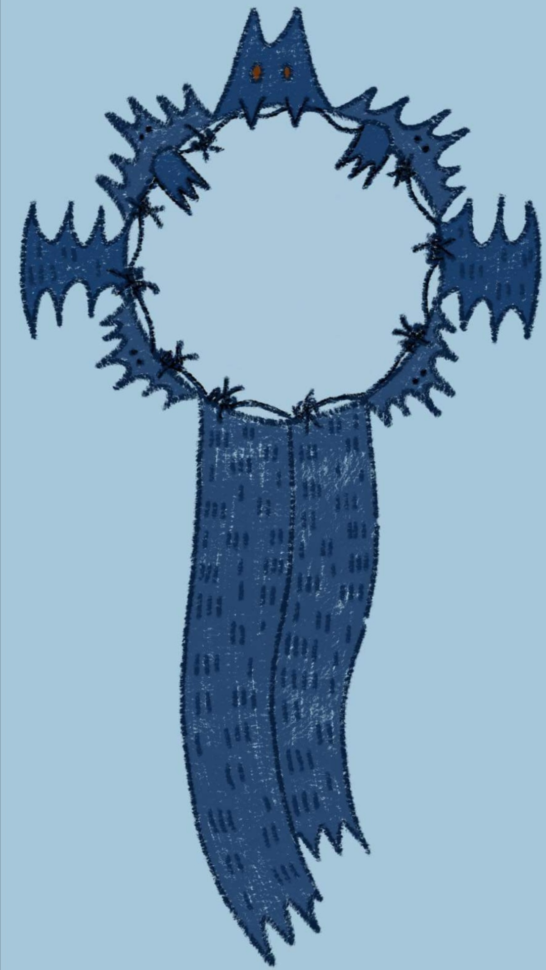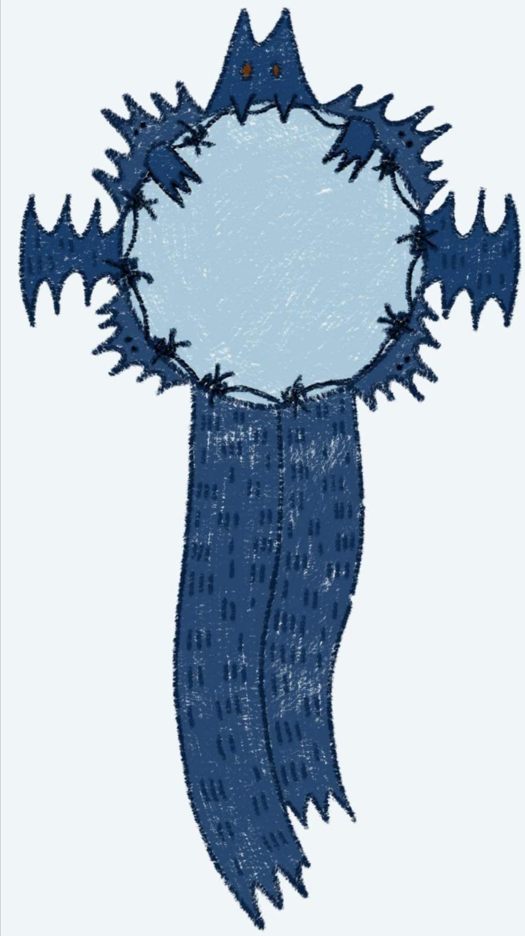 I made this by sketching on paper and then taking a picture and uploading it to Procreate so I could work on it using my IPad. I LOVE how this turned out! I was having trouble making a rosette that I liked that I didn't feel bored by, I like quite dark and spooky things, I look like/am a goth and think bats are very cute-so I made a bat rosette! With barbed wire to make it more edgy haha.