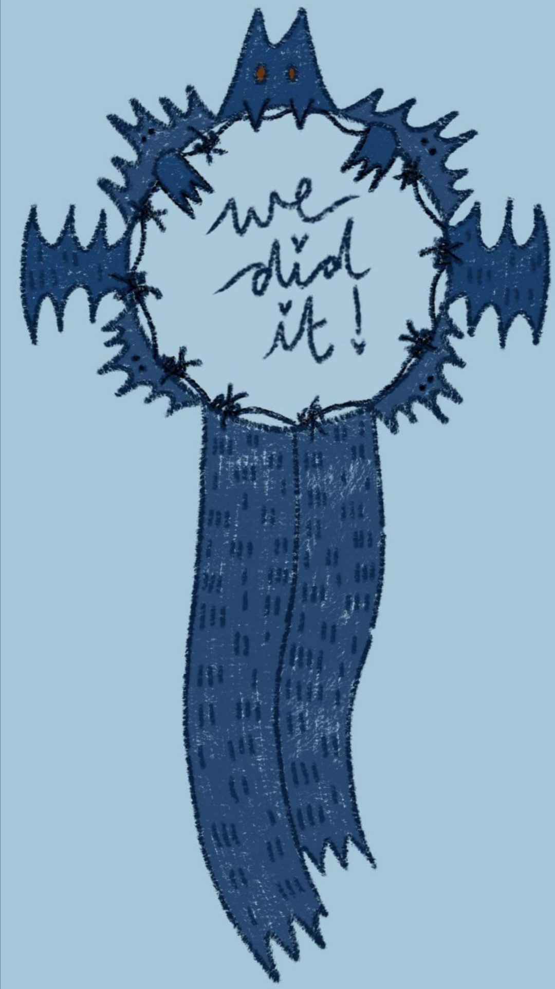 We all needed to include "we did it!" or something along those lines, so this is what my design looks like without the text. The background for all of our pieces is a baby blue colour.