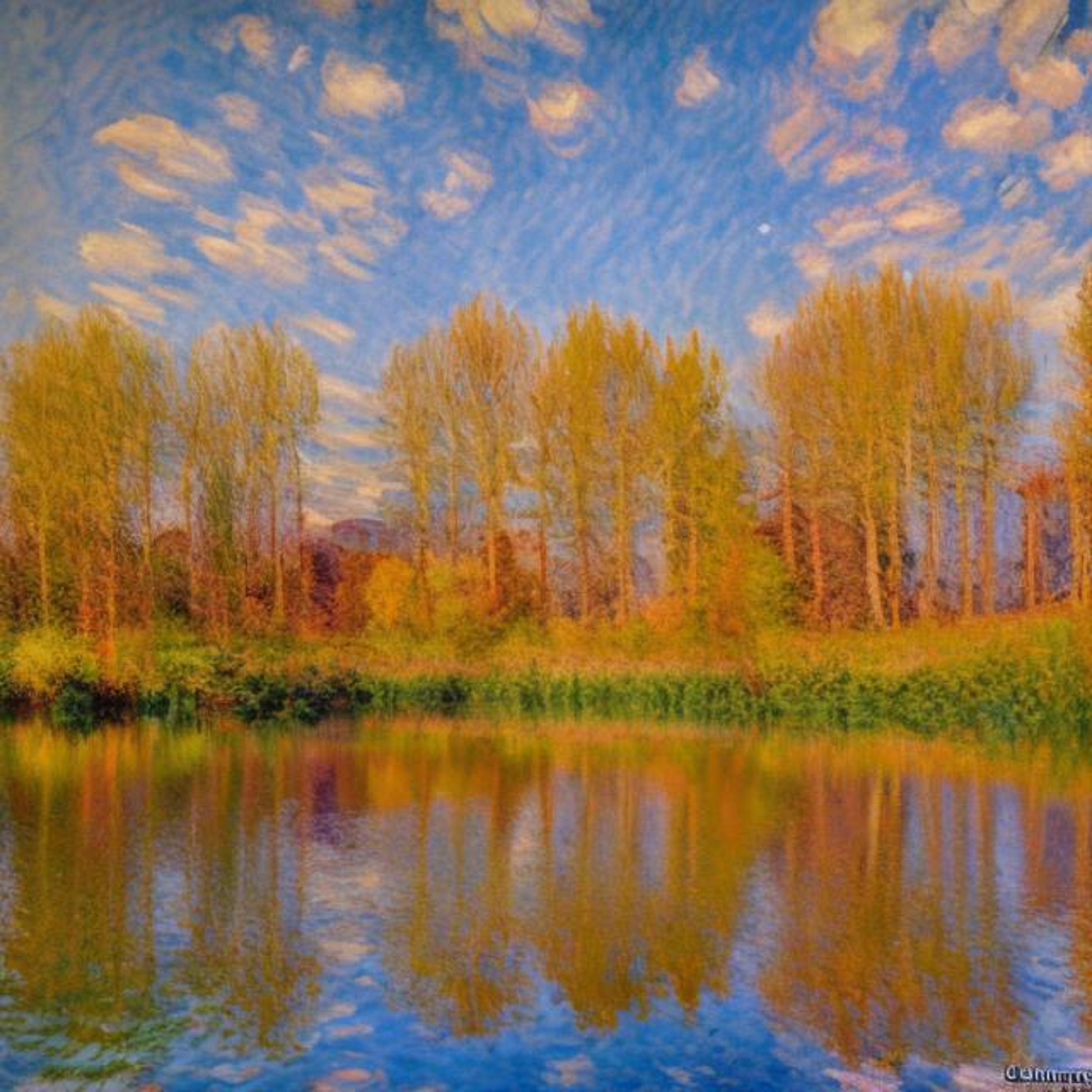 Impressionist painting, style of Claude Monet with maple trees. the second version of my 'summer trees' picture. l like this one better!