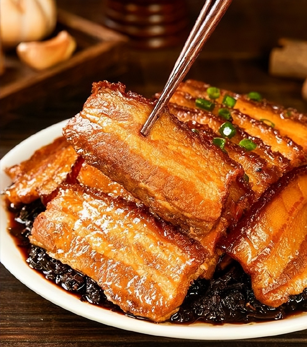 梅菜扣肉是广东客家人的传统名菜,后融入湖南文化,成为湖南待客的佳肴。这道菜起源于北宋时期,苏东坡在惠州时,受到杭州东坡扣肉的启发,加入梅菜制作而成。其主料包括客家咸菜、五花肉、蒜仁等,制作过程中需将猪肉煮至八成熟,然后抹上酱油,再与梅菜一同烹饪。这道菜不仅美味,还蕴含着丰富的文化内涵。