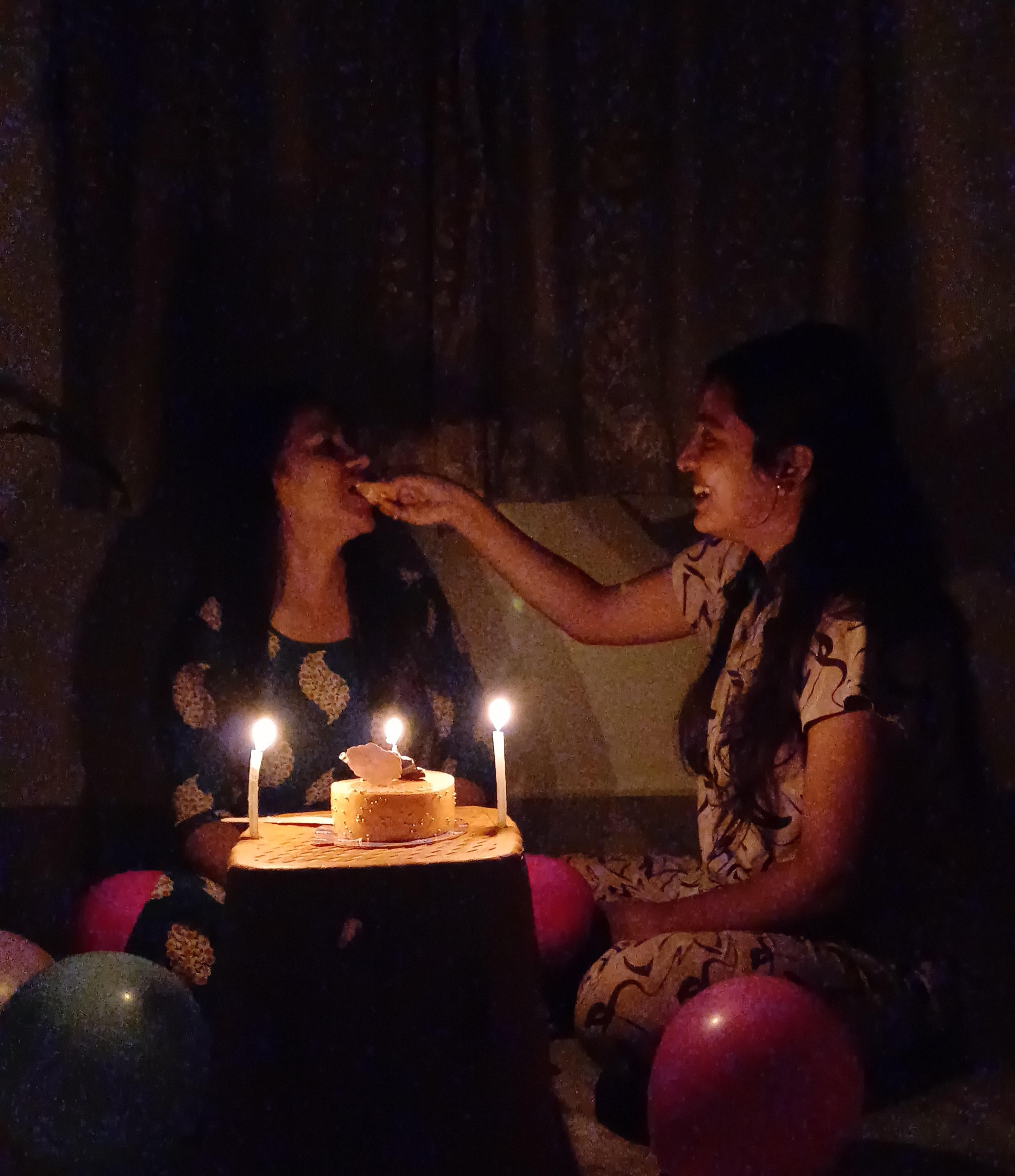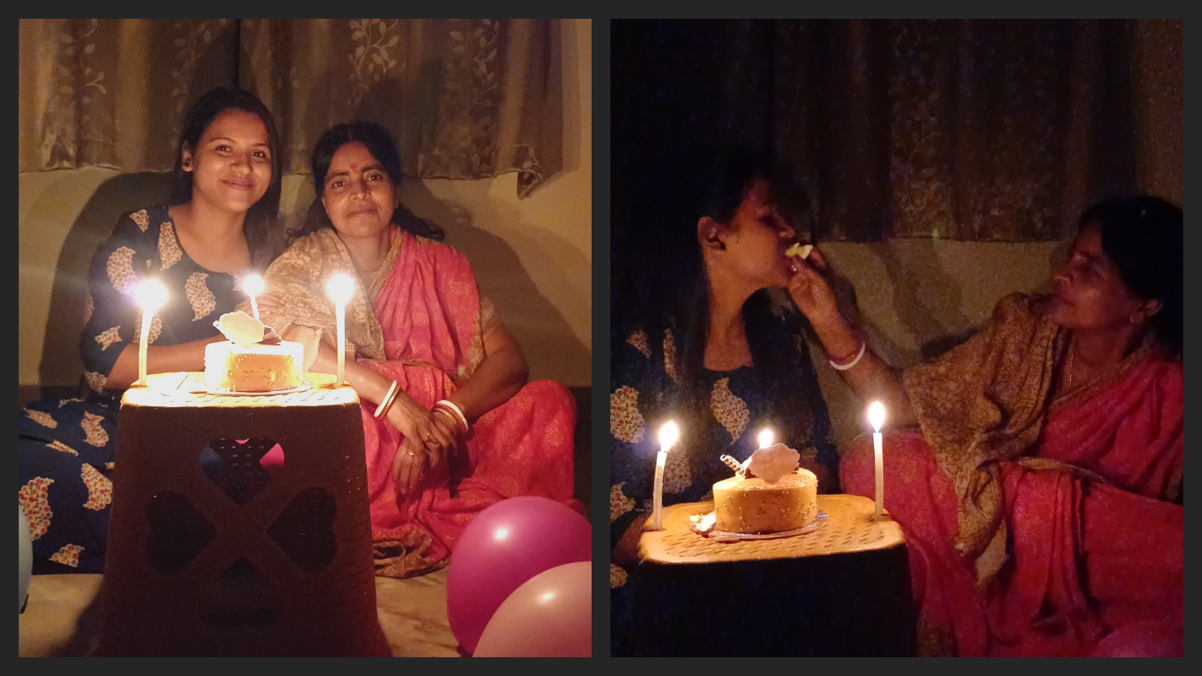 তাই মাও আমার সাথে এক্টিং করে ওর সাথেই আস্তে আস্তে উপরে চলে আসলো ।এদিকে আমি তো লাইট অফ রেখে কেকটা আমাদের বারান্দায় সাজিয়ে চারিদিকে বেলুন রেখে, মোমবাতি জ্বালিয়ে রেডি করে রেখেছি ।আর মোমবাতির আলোতে জায়গাটা ভীষণ সুন্দর দেখতে লাগছিল।