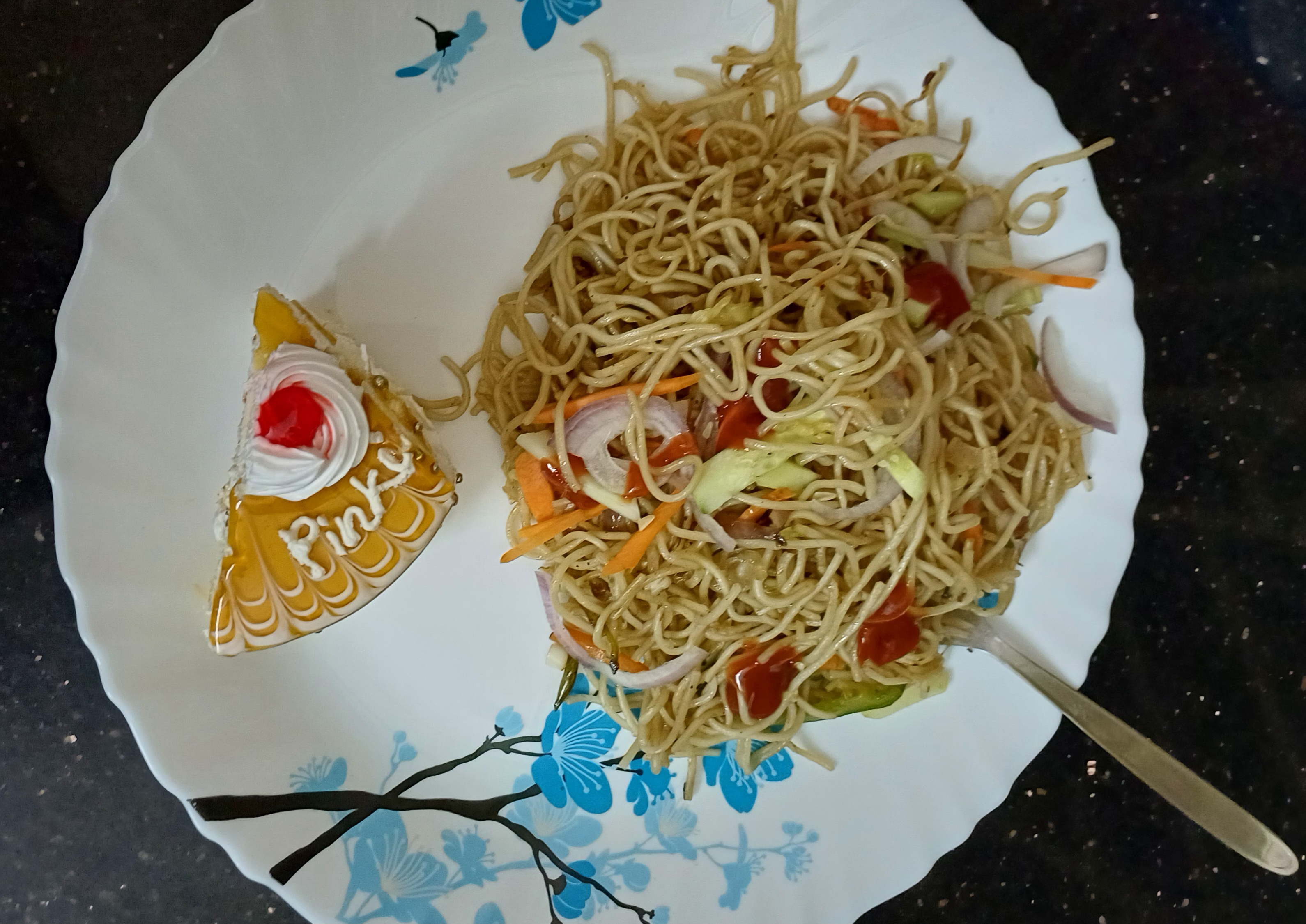 আমি পিংকি দিদির জন্য ভেজ চাওমিন অর্ডার করেছিলাম। সেটাও চলে এসেছিল ততক্ষণে। সবমিলিয়ে কেক কাটা হয়ে যাওয়ার পর চাউমিন আর কেক ওকে সাজিয়ে গুছিয়ে দিলাম। সব মিলিয়ে ওই সময়টুকু ভীষণ সুন্দরভাবে কেটেছে।। ওকে অল্প সময়ের জন্য হলেও আনন্দ দিতে পেরে আমিও অনেক খুশি হয়েছি। আর আমি মনে করি , ও এরকম আনন্দ ডিজার্ভ করে।