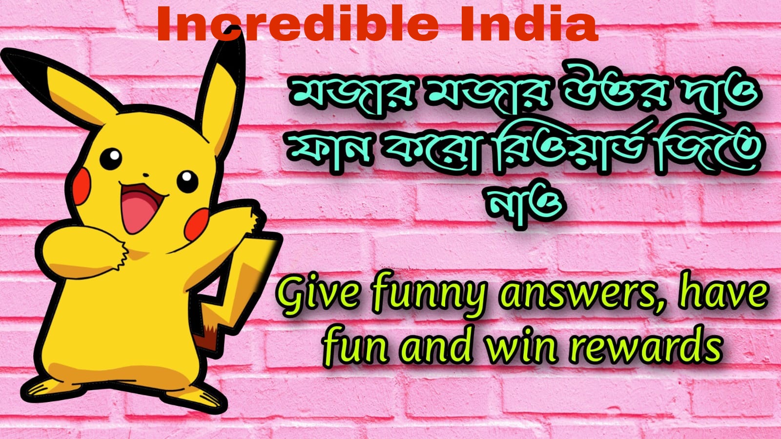 "Incredible India Fun"-এ আপনাদের সবাইকে স্বাগত জানাচ্ছি। একটি সম্পূর্ণ ভিন্নধর্মী উদ্যোগ শুধুমাত্র কিছুটা আনন্দ উপভোগ করার প্রচেষ্টা। তাই আপনাদের স্বতঃস্ফূর্ত অংশগ্রহনে আরও উপভোগ্য হয়ে উঠতে পারে