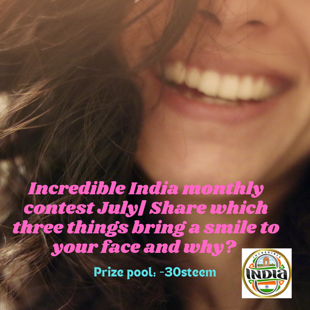 https://steemit.com/hive-120823/@sinthiyadisha/incredible-india-monthly-contest-july-or-share-which-three-things-bring-a-smile-to-your-face-and-why-sinthiyadisha