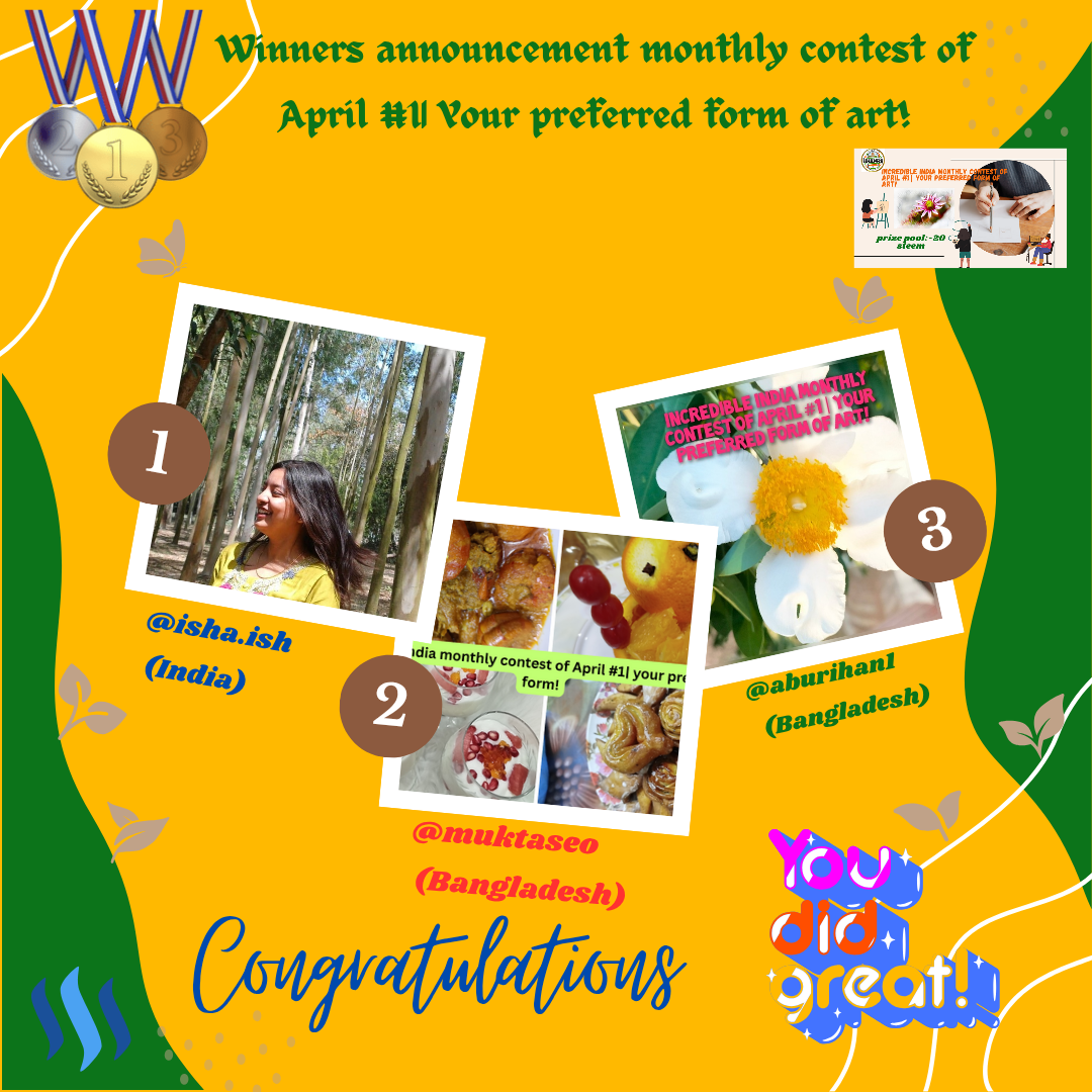 Winners announcement monthly contest of April #1| Your preferred form of art!